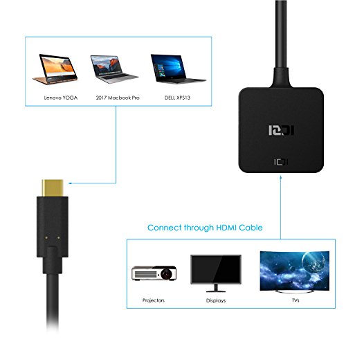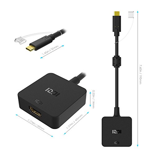USB C to HDMI 4K Adapter, ICZI USB 3.1 Type C (Thunderbolt 3 Port Compatible) to HDMI 4K Cable Adapter Converter for MacBook, Chromebook Pixel, Lenovo Yoga 900, Dell XPS 13 and More - Black