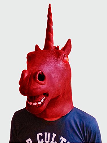-. Feature : Name: Gmask Latex Red Evil Unicorn Mask / Manufacturer Model: GM732 / Material: 100% Natural Latex from Malaysia / Size: Fits most adult heads / How do you see? Through the Evil Unicorn Masks's the mouth holes