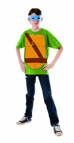 -. Binding : Toy -. Brand : Rubie's -. Color : Green / Blue -. Department : unisex-child -. Feature : Printed shirt and eye-mask costume / Designed to be worn with child's pants / Teenage Mutant Ninja Turtles (TMNT) are four fictional anthropomorphic, crime fighting turtles / Child size Large fits up to 60 Inch tall with a 31 to 34-Inch waist, 35 to 39-Inch chest and 35 to 39-Inch hips / Officially licensed Teenage Mutant Ninja Turtles costumes and accessories are available in sizes and styles for everyone in the family -. Label : Rubies - Domestic -. Manufacturer : Rubies - Domestic -. Model : 889572L-P -. MPN : RC889572 -. NumberOfItems : 1 -. PackageQuantity : 1 -. PartNumber : RC889572 -. ProductGroup : Toy -. ProductTypeName : CHILDRENS_COSTUME -. Publisher : Rubies - Domestic -. ReleaseDate : 2013-08-12 -. Studio : Rubies - Domestic -. Title : Teenage Mutant Ninja Turtle Child's Leonardo Costume Top and Eye mask -. Warranty : No Warranty