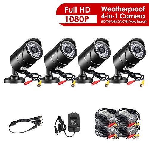 -. Title : ZOSI 4 Pack 2.0 Megapixel HD 1080P 4 in 1 TVI/CVI/AHD/CVBS Security Cameras Day Night Waterproof Camera 100ft IR Distance, Aluminum Metal Housing, Compatible for HD-TVI, AHD, CVI, and CVBS/960H analog