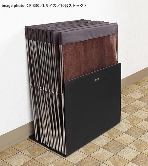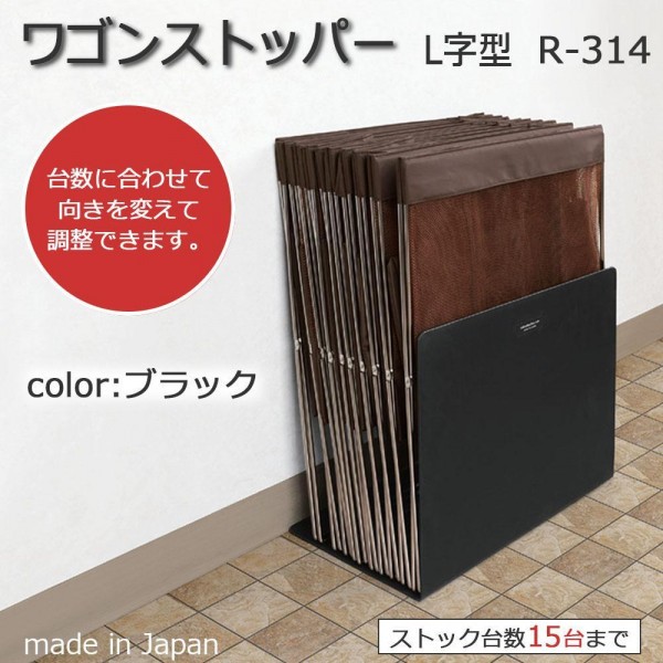 店舗のバックヤードなどでワゴンをまとめて置いておく際に便利なストッパー。壁に立てかけた手荷物入れの手前に置くだけで、ずれ落ちを防いでスマートにストックできます。ストック量に応じて、向きを変えればスッキリと収まります。 |