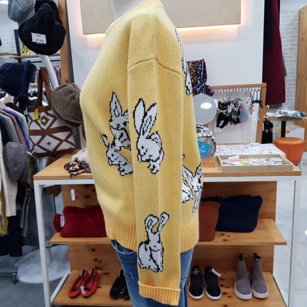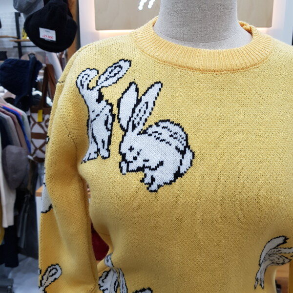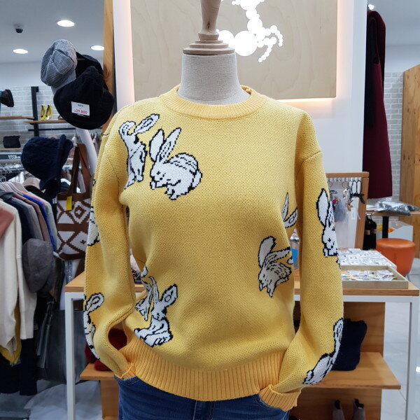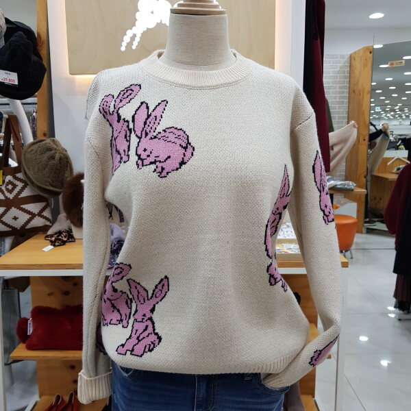 토끼그림의 라운드니트입니다심플한디자인의 귀여운 토끼무늬로 데일하게 입을수있는 스타일입니딘