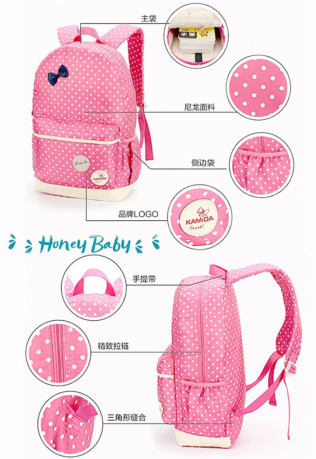 The material is polyester, waterproof and durable, rear is breathable and comfortable.