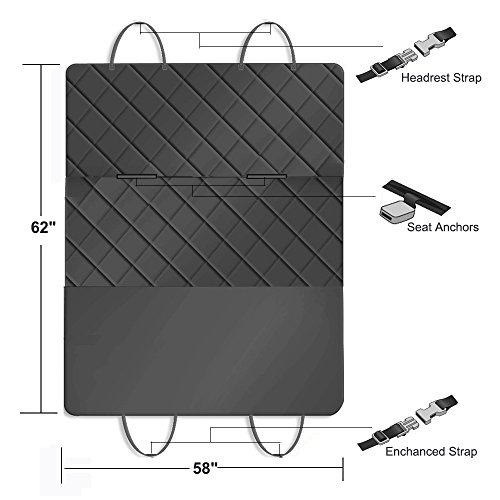 -. Feature : ✔CAR SEAT PROTECTION-Provide effective and convenient way to keep your car interior away pets' scratches, claw, hairs, pee and dirt, give you interior a sleek NEW LOOK and make your lovely pets feel comfortable in car journey. / ✔NON-SLIP & WATERPROOF-Anti-slip backing protect the dog slipping off during rough ride and keep her in stable and comfy place. And the waterproof material keeps your seat away any unexpected situations like slobbering, pee when travel with your lovely pets. / ✔DURABLE & WASHABLE-Made of heavy duty oxford fabric and washable polyester materials, no need to worry the pets' claws damage the seats. And When it gets dirty, just wash it and get a NEW one. / ✔SAFTY PROTECTION-Come with adjustable seat belt to protect your lovely pets when sudden brake. Restrain your pets safty and enable them to sit, stand or lie down in a car without distracting the driver. / ✔EASY TO INSTALL-Super easy to install by wrapping straps around headrest and adjust the straps and anchors to keep it in firm place. And If you are not 100% thrilled with our pet car seat cover, let us know and receive a full refund, no question ask. BE IT DOGS AND CATS, THEY ARE PEOPLE TOO!