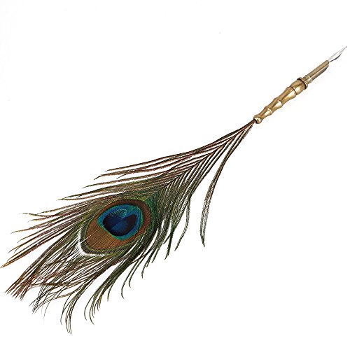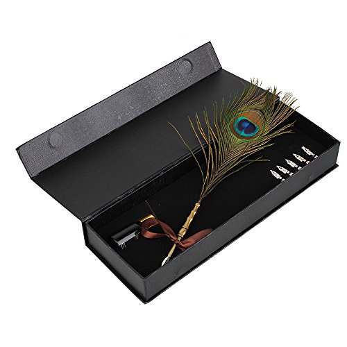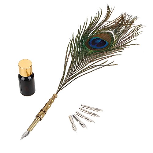 -. Title : BQLZR Retro Antique Dip Pen Colorful Queling Peacock Feather Quill Pen Set With Ink bottle For Writing