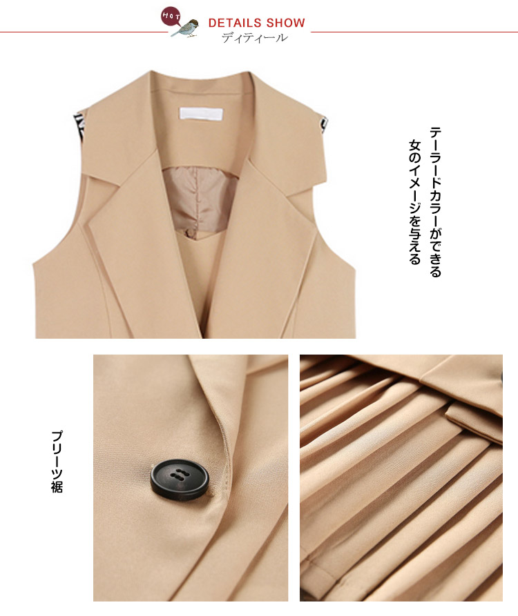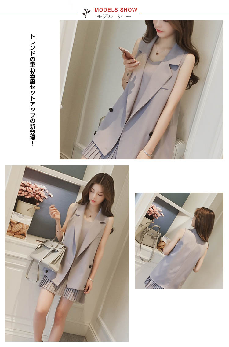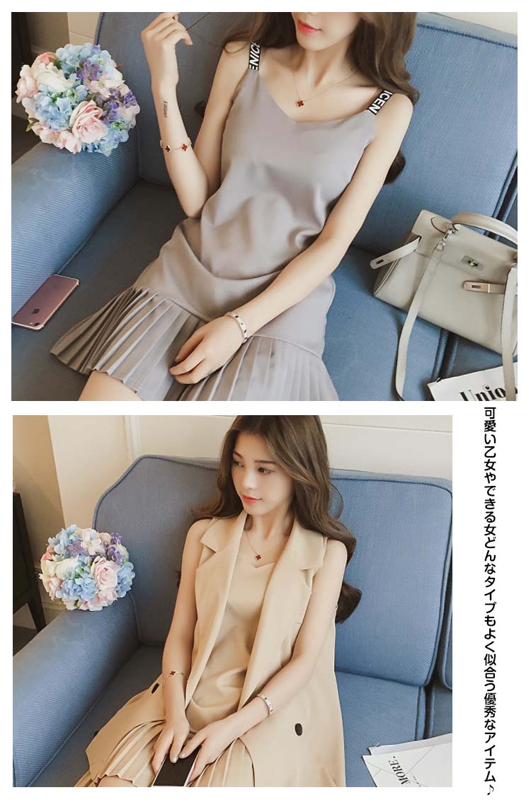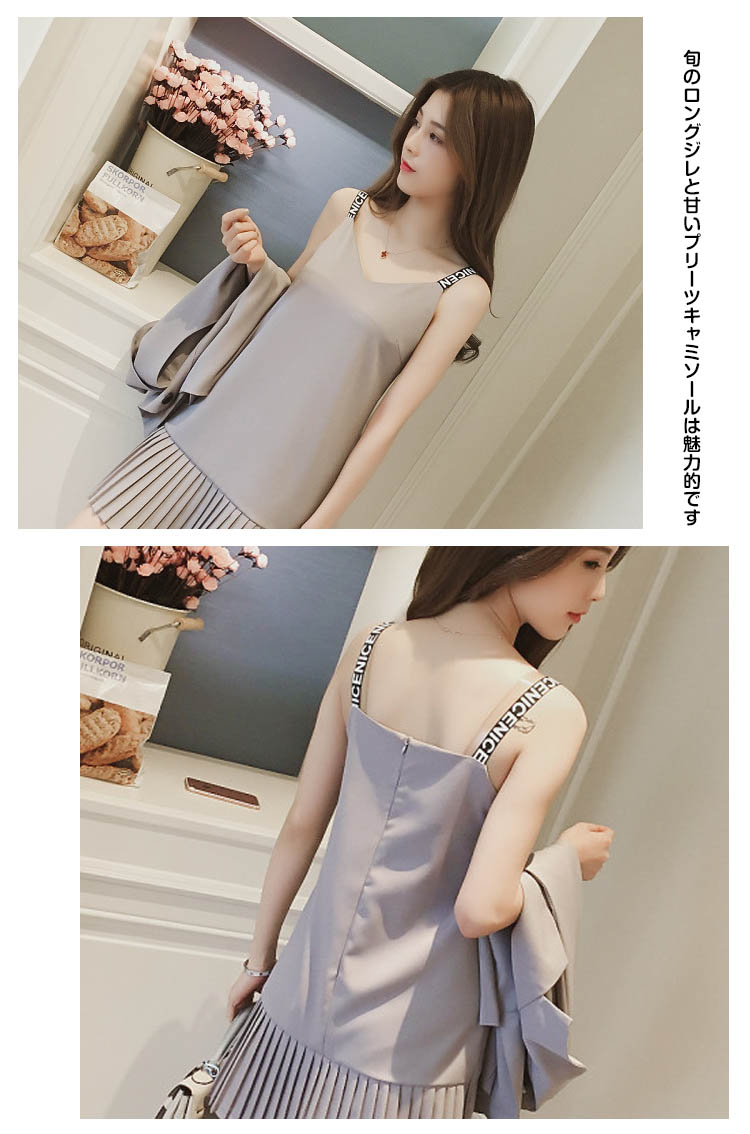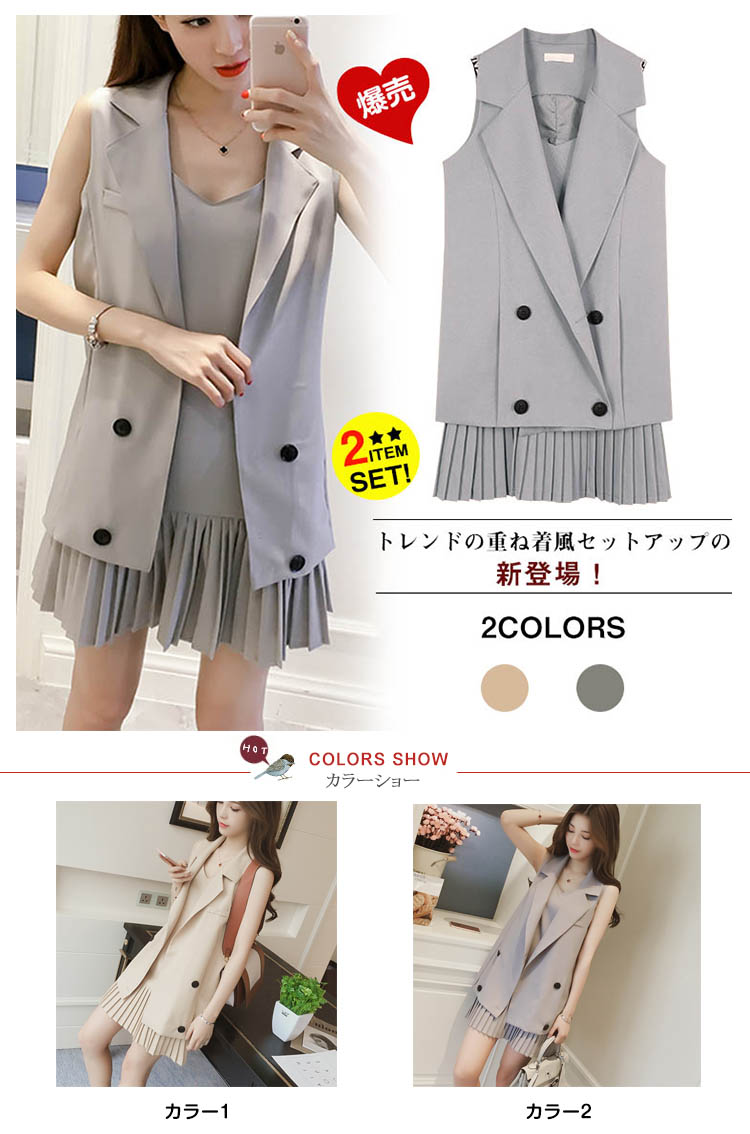 | トレンドの重ね着風セットアップの新登場!旬のロングジレと甘いプリーツキャミソールは魅力的です可愛い乙女やできる女どんなタイプもよく似合う優秀なアイテム♪ベストの方はロングTや半袖Tシャツともコーデに合わせるだけで一気にこなれ感アップ | |