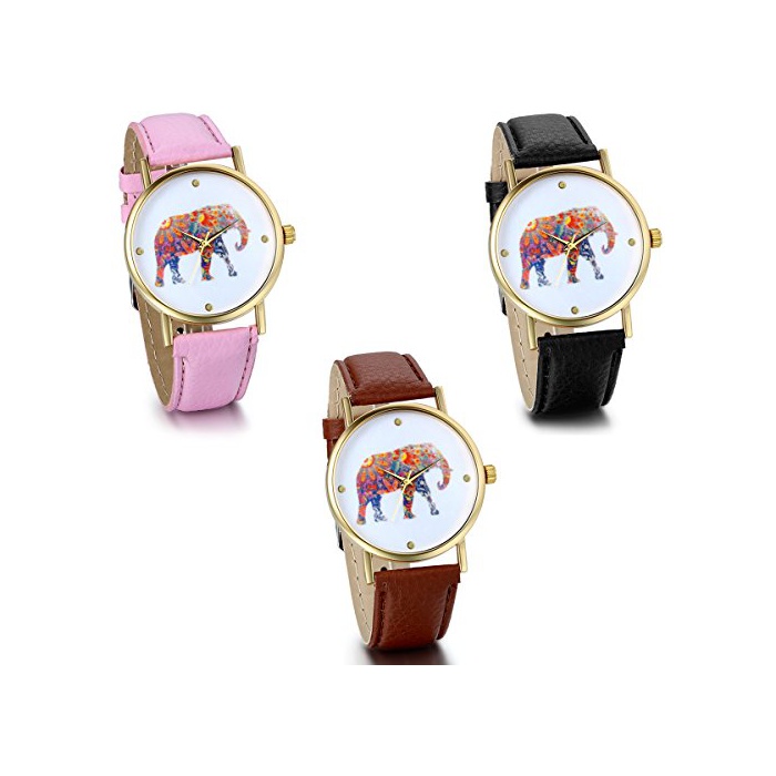 원본상품명: JewelryWe バレンタインデ 愛のに:腕時計 レディス ウォッチ,PUレザ ベルト,おしゃれ ブレスレット風 象さん かわいい レトロ,アナログ表示