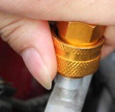 5. Turn the car engine on and turn on the air conditioning AC switch, the blower open to maximum, run and wait for three points. Connect the DIY pipe interface to the low pressure side of the car air conditioner.
