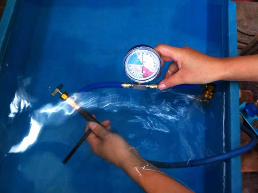 6.DIY tube access low-voltage interface, the DIY tube pressure gauge will instantly have a scale indication. At this time the pressure gauge on the DIY tube is consistent with the air conditioning system pressure, look at the pressure gauge on the pressure scale, you know the pressure in the system. How much pressure does it need to add to the refrigerant? At this time there is a knowledge that! The pressure in the air conditioning system varies according to the ambient temperature.