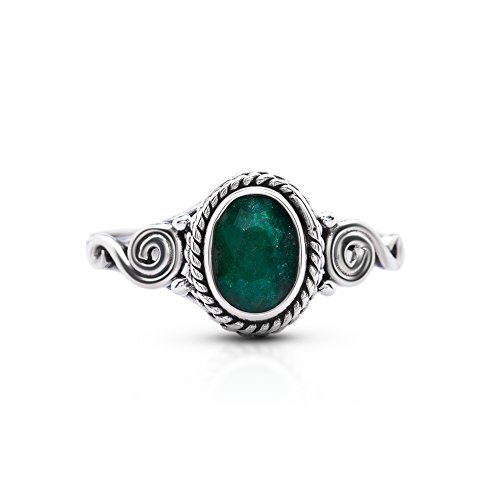 -. Title : Created Emerald Spiral Sides Small Ring 925 Sterling Silver Tribal Gipsy Boho US Size 5 6 7 8 9