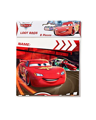 - Feature : 8 treat bags / Each bag measures 6 1/2 in. x 9 1/4 in. / Each loot bag has a cutout handle and a space to write the recipient's name / Vroom! Cars favor bags feature Lightning McQueen and Francesco Bernoulli from Disney's Cars 2! / Perfect goodie bags for a kid's birthday party or Cars themed party