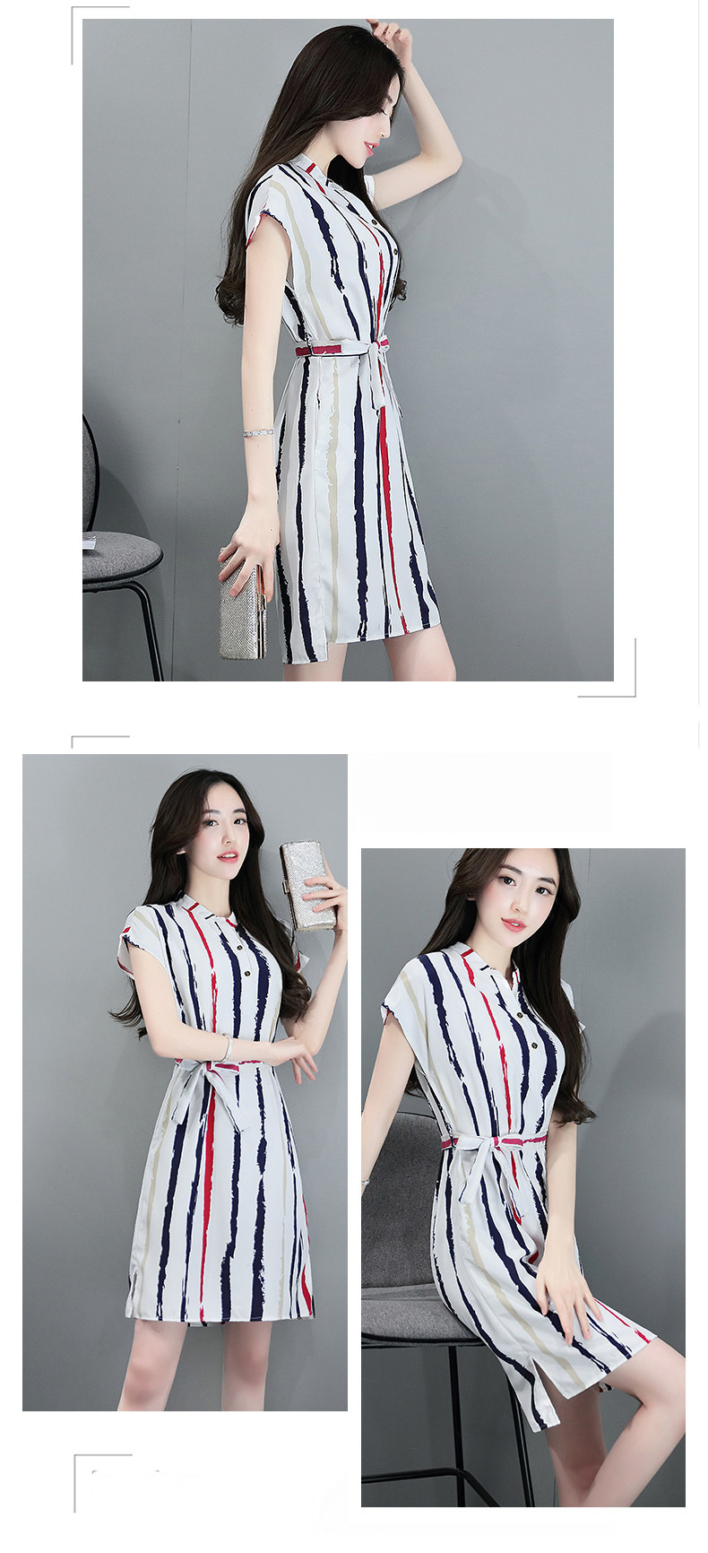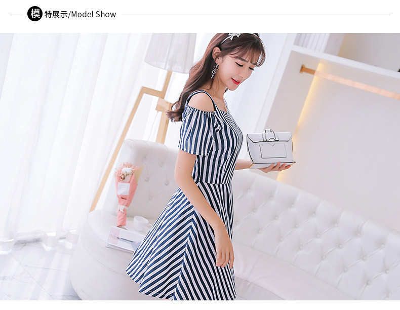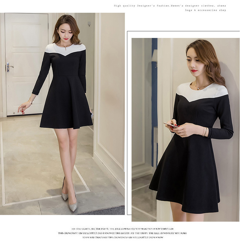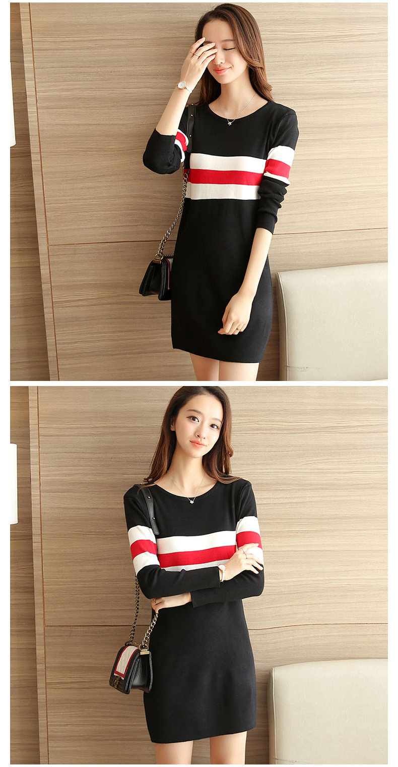 Color: White half stripe Black Dress
