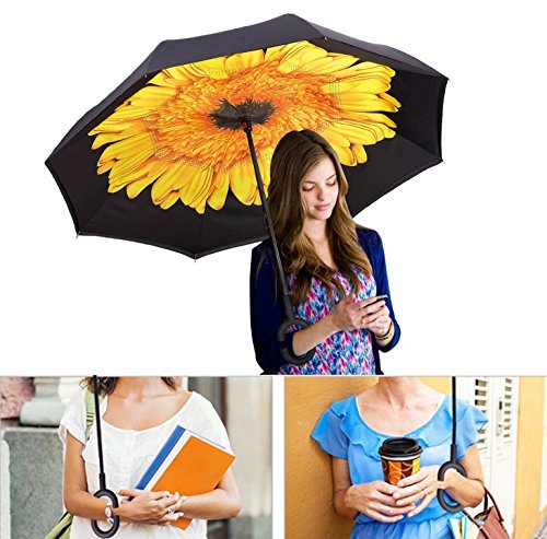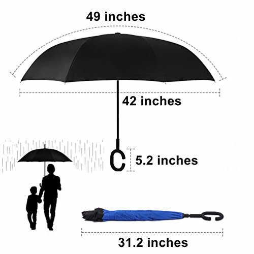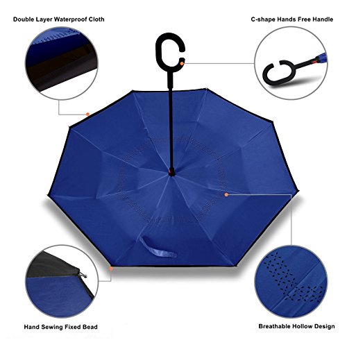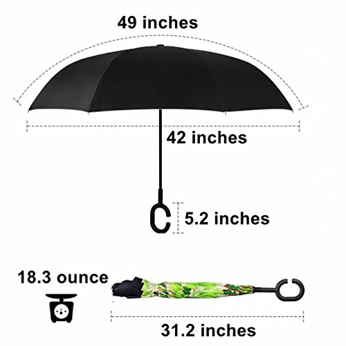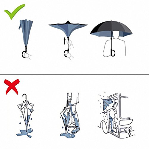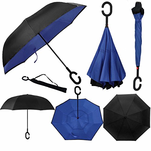 Studio : Skywon Publisher : Skywon Binding : Misc. Product Description Skywon Inverted Umbrella with Double Layer and Carrying Bag, windproof and UV proof reverse umbrella. Have you ever encountered such a problem in the rainy days? When you jump on a crowded train or bus after escaping a downpour, your dripping wet umbrella usually brushes up against your bag, your clothes or a stranger. ***Skywon inverted umbrella help you solve above problem.*** Double Layer Inverted Umbrella This new design helps hide the raindrops inside when fold the umbrella. Avoid wetting the room or car. Also it only need smallest space to open the umbrella, suitable for the car users. 42 inches width is enough for two people to shelter. Easy to Operate and Safe Enough With a simple click of the embedded button, you can open and close the umbrella in confined spaces when entering or exiting a building or car and it's less awkward and safer to open and close when in crowds, since the danger to poke in people's eyes has been removed by the design. Convenient to place and handle Easy to place, it can stand up by you on its own when closed, saving much space for you. Holding an umbrella with your wrist, you can free your hands to make a phone call, to play with your cell phone, to hold a baby. Package include: 1 x Inverted umbrella 1 x Black Umbrella Cover 0 |