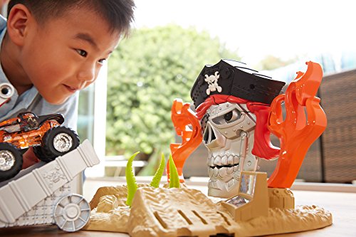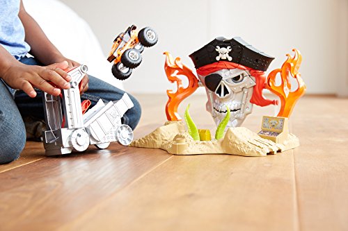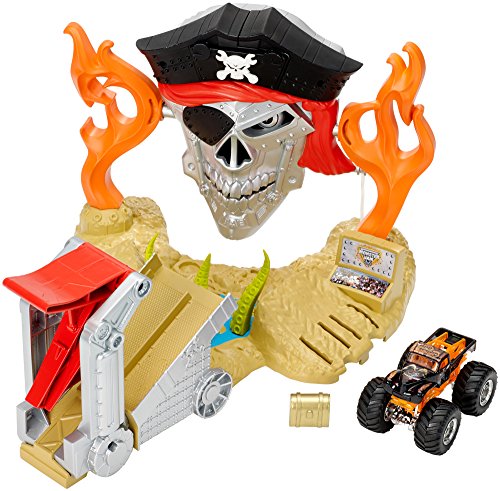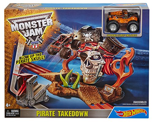 -. Binding : Toy -. Brand : Hot Wheels -. EAN : 0887961226881 -. Feature : Monster Jam mayhem lies dead ahead with the Pirate Takedown play set! / Battle treacherous tentacles, a monstrous lagoon, and a ghostly pirate ship with a surprise inside / Blast the cannon to fire the Captain's Curse Monster Jam truck to blow the pirate ship apart and uncover a pirate skull ready to attack / Score another direct hit on the pirate skull to blow its "lid" off revealing the mechanical brains and vast treasure chest inside / Comes with one Captain's Curse Monster Jam truck for instant stunting action -. IsAdultProduct : 0 -. Label : Mattel -. Manufacturer : Mattel -. Model : DJK63 -. MPN : DJK63 -. PackageQuantity : 1 -. PartNumber : DJK63 -. ProductGroup : Toy -. ProductTypeName : TOYS_AND_GAMES -. Publisher : Mattel -. Studio : Mattel -. Title : Hot Wheels Monster Jam Pirate Takedown Play Set -. UPC : 887961226881 -. Warranty : 1 year warranty against manufacturer defects
