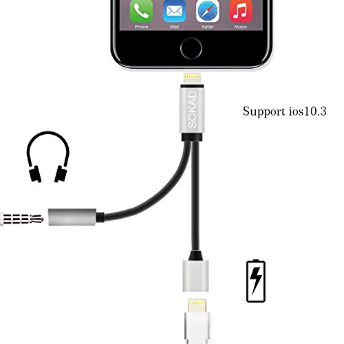 -. Feature : Work with most cases: the lightning adapter is narrow and small that fits most cases, also a high quality to withstand repeated plug and remove, it is premium and durable. / Compatible devices: Special design for iPhone 7 / 7 plus and other Apple devices, such as iphone 6 / 6s / 6 plus / 6s plus, iPod, iPad with the same lightning charging port.Compatible with iOS 10.3 / 2 in 1 technology: One cable with two functions, one is 3.5mm lightning headphone adapter, the other is lightning charging port, so you can listen to music while phone is charging. / Simply work: No extra software, just plug and work, it is so slim, light and portable to any where, like home, office, cinema, restaurant, car, pocket, handbag and in a trip, makes your life more convenience. / Important Note: No Microphone support (can not answer or end the phone calls). no music control support (can not adjust the volume, play or pause the music), just a converter cable.