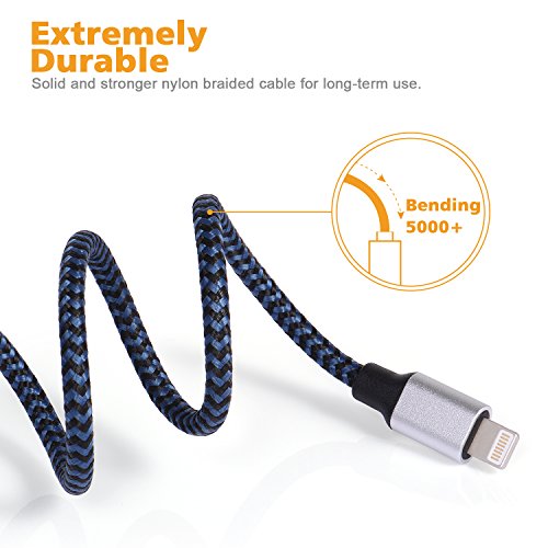 Lightning Cable, Cablex iPhone Charger 3Pack 10FT Ultra Long Nylon Braided USB Cable Cord Compatible with iPhone7 7Plus 6s 6sPlus 6 6Plus 5 5s 5c SE iPad iPod & More (BlackBlue)