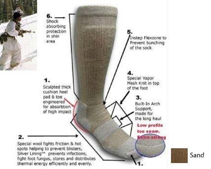 -. Binding : Apparel -. Brand : Covert Threads -. Department : unisex-child -. Feature : Made in the USA / Absorbent Acrylic and Wool keep feet dry all day / Designed to eliminate hot spots and absorb toe and heel impact -. Label : PROOK -. Manufacturer : PROOK -. ProductGroup : Sports -. ProductTypeName : SOCKSHOSIERY -. Publisher : PROOK -. Studio : PROOK -. Title : Covert Threads Rock Infiltrator Socks