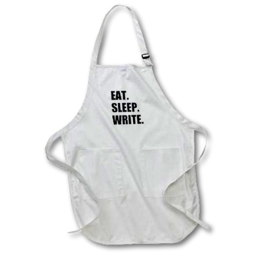 3dRose apr_180459_1 Eat Sleep Write-Black Text-Writing Fan-Writer Gifts-Fun Funny-Full Length White Apron with Pockets, 22 by 30-Inch
