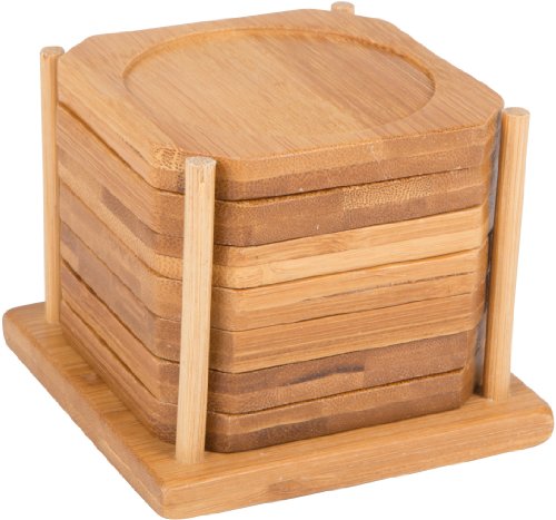 Title : Trademark Innovations 100-Percent Bamboo Coaster with Holder (Set of 6 ), Natural