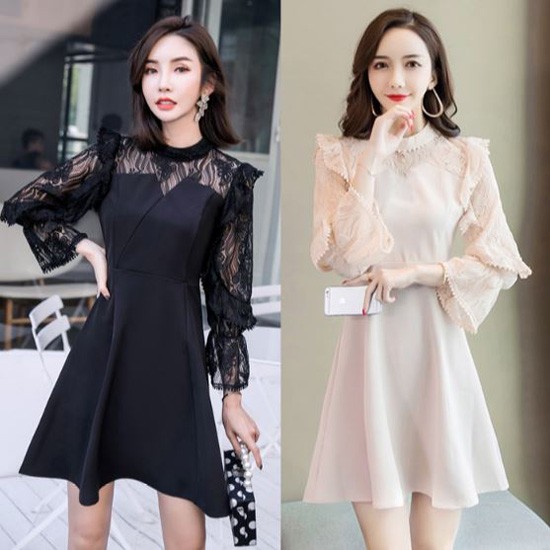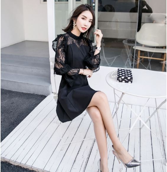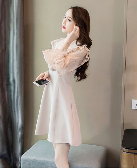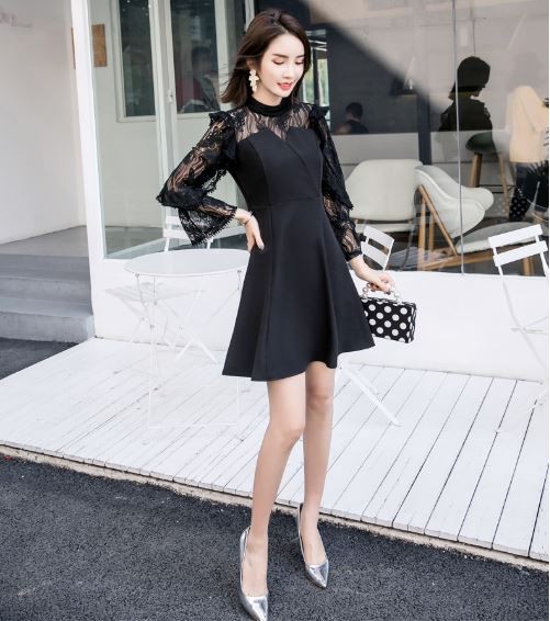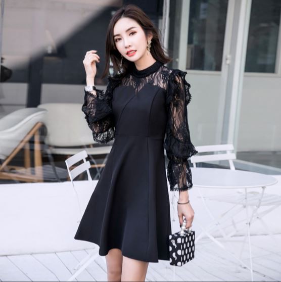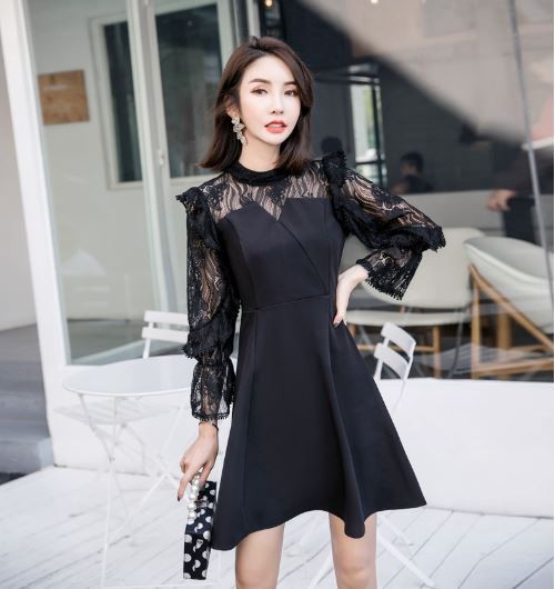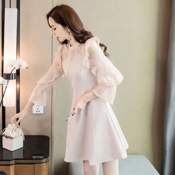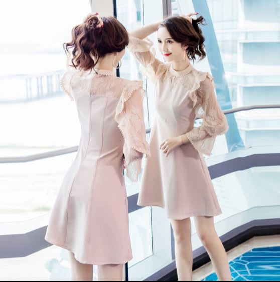 透け感のあるフリル袖が華やかなパーティードレスです。