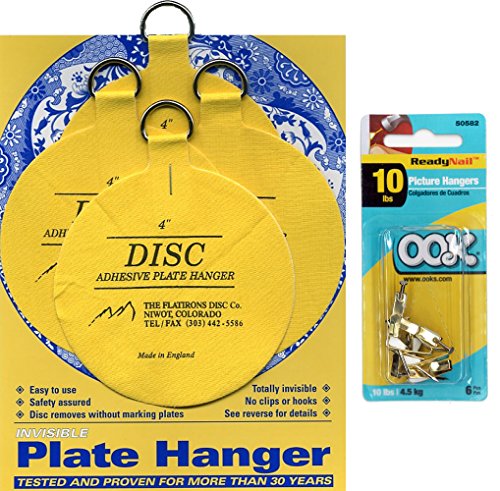 Flatirons Disc Set of Four 4 Inch Adhesive Plate Hangers and OOK Readynail 10lbs. Picture Hooks (6 Hooks in Package) - Bundle of 2 Items