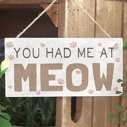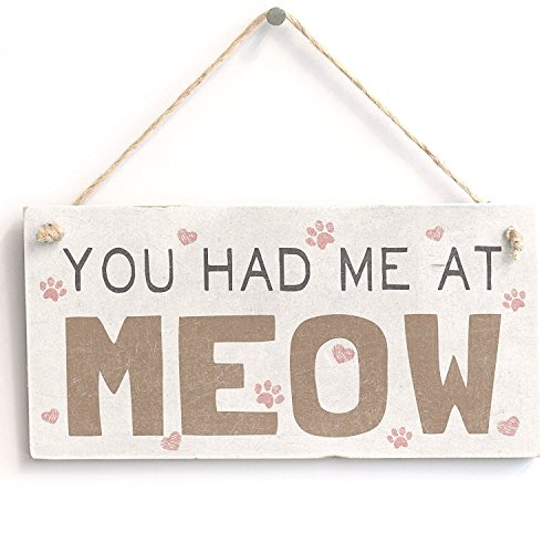 Meijiafei 'You Had Me At Meow' Cat Sign - Door Sign/ Plaque 10"x5"