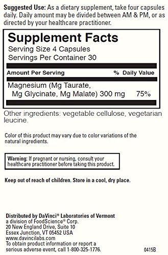 -. Feature : Tri-Mag 300 is a dietary supplement providing 3 important chelated forms of magnesium for enhanced absorption. / STRENGTH IN EXPERIENCE: For over 40 years, DaVinci Laboratories has been a leader in nutritional research, product development and innovation from its home state of Vermont. DaVinci Laboratories is a family-owned and managed company. Every day, DaVinci continues to set new standards for quality and product innovation so they can keep you as healthy and informed as possible. / STRENGTH IN NATURE: The raw materials used in DaVinci products are as natural as possible and are guaranteed to contain no artificial flavorings, preservatives, colors, sweeteners or other foreign agents unless otherwise stated on the label. / STRENGTH IN INTEGRITY: DaVinci Laboratories is one of the few companies to offer you truth in labeling. Pledging total truth in labeling means the DaVinci family of products contain only the purest and most potent ingredients. Guaranteed. / STRENGTH IN RESEARCH: DaVinci Laboratories' research focuses on the complex relationships that exist among nutrients and the latest advancements in nutritional therapies to develop and produce some of the most significant products available. The Research and Development Department is under the direction of a Ph.D. Nutritional Biochemist.