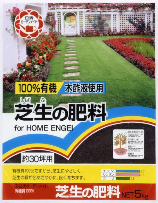 有機質100%なので肥料焼けしにくいです。木酢入りなのでブラウンパッチ等病気になりにくい丈夫な芝生を育てます。