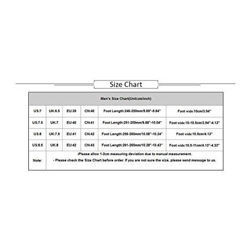 ?:Men's Size Chart(Unit:cm/inch) ?:US:7===CN:40===Foot Length:246-250mm/9.69"-9.84"===Foot wide:10cm/3.94" ?:US:7.5===CN:41===Foot Length:251-255mm/9.88"-10.04"===Foot wide:10-10.5cm/3.94"-4.13" ?:US:8===CN:42===Foot Length:256-260mm/10.08"-10.24"===Foot wide:10.5cm/4.13" ?:US:8.5===CN:43===Foot Length:261-265mm/10.28"-10.43"===Foot wide:10.5-11cm/4.13"-4.33" ?:Feature: ?:Gender: Men ?:Material:PU ?:Sole Material:TPU ?:Style: Fashion,Casual ?:Item Type: Casual Shoes ?:Heel Type: Flat with ?:Toe Shape: Round Toe ?:Appropriate Season: Autumn,Winter ?:Occasion: Outdoor ?:Package: 1 Pair Men Shoes ?:Note: ?: ?:Due to lighting effects, monitor's brightness/contrast settings etc,there could be some slight differences in the color tone of the pictures and the actual item ?:If you have problem of the item, please contact us we will do our best to resolve the problem for you ?:We suggest you choose a larger size, if your actual feet length is longer than the?above?feet length 0