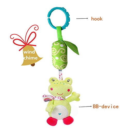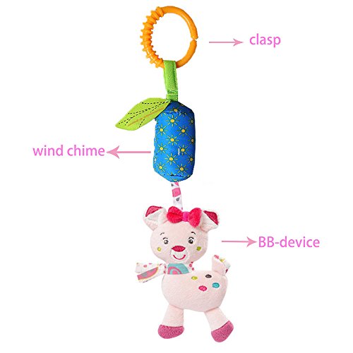 ☞ SOFT VOICE TO ATTRACT BABY: Each car seat hanging toy built-in wind chime and BB-device.It will make soft sound to attract your baby when shaking,help parents to play with babies.Sweet animal comes with BB-device,gently press and it will squeak.Help to stimulate your babies muscle and delevop grab ability.