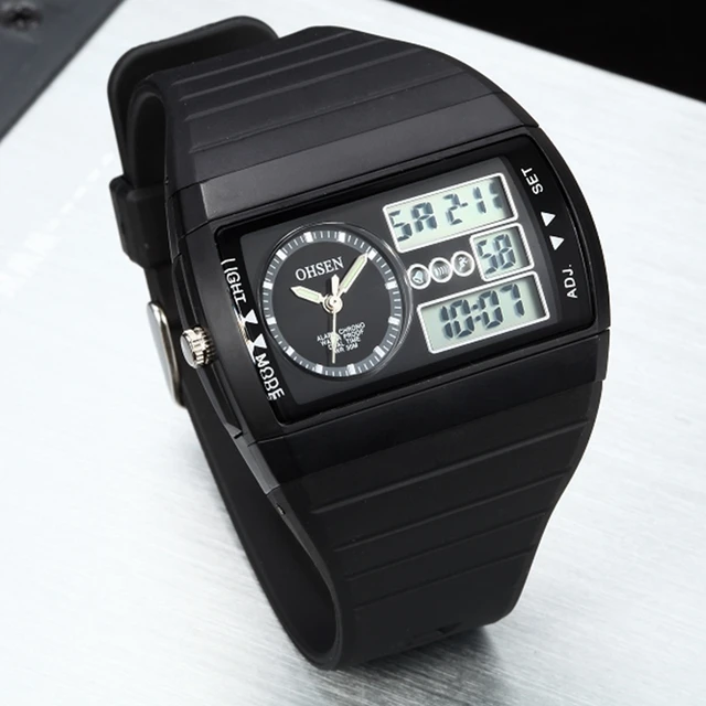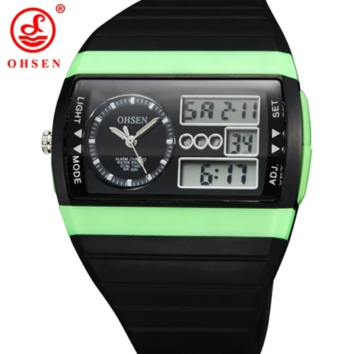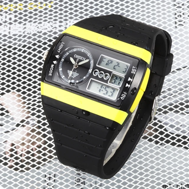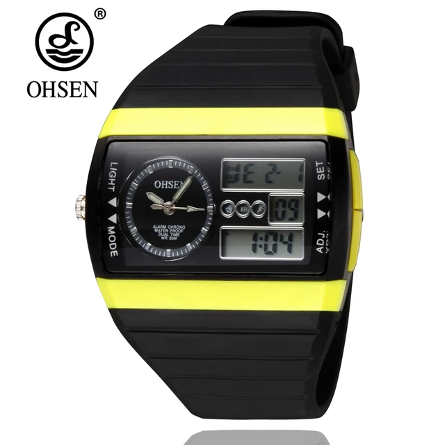 | [해외]2016 새로운 ohsen 디지털 스포츠 남성 석영 시계 30 메터 방수 노란색 다이얼 고무 밴드 다이빙 시계 relogio masculino |