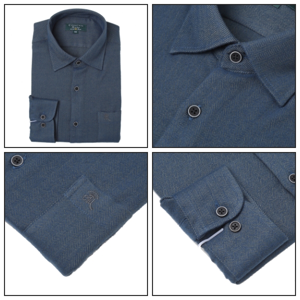 스타일.일반핏 스넵카라에 구김없는 헤링본짜임 기모남방셔츠