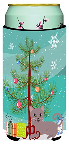 Caroline's Treasures Russian Blue Cat Merry Christmas Tree Tall Boy Beverage Insulator Hugger, Multicolor
