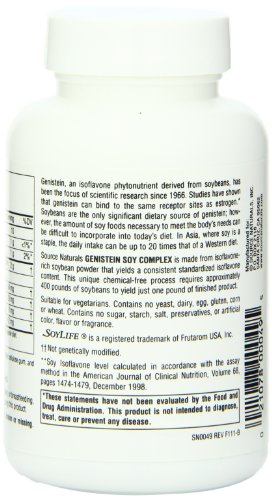 ReleaseDate : 2017-10-04 Studio : Source Naturals Publisher : Source Naturals Binding : Health and Beauty Product Description Made from isoflavone rich soybean powder that yields a consistent standardized isoflavone content;Studies have shown that genistein can bind to the same receptor sites as estrogen;Vegetarian freidnly 0