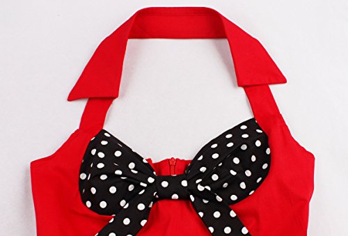 KILOLONE Women Halter Rockabilly 1950s Vintage Retro Polka Dot Pin Up Swing Cocktail Party Prom Dress