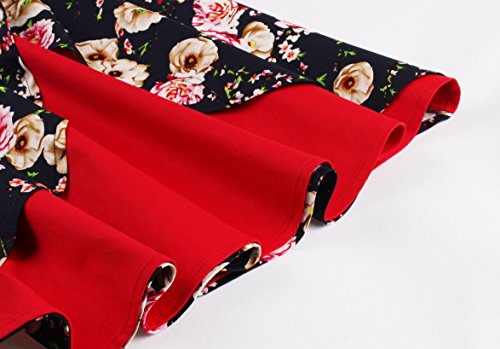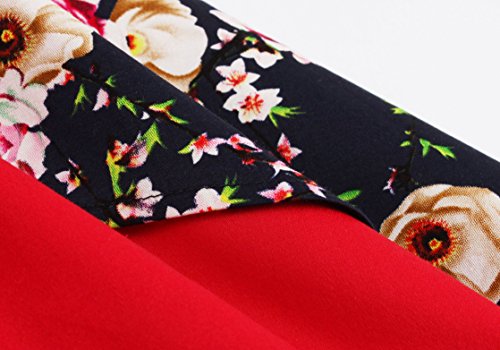 KILOLONE Women's 50s Floral Cap Sleeve Rockabilly Vintage Party Evening Cocktail Dress?Red?XL?