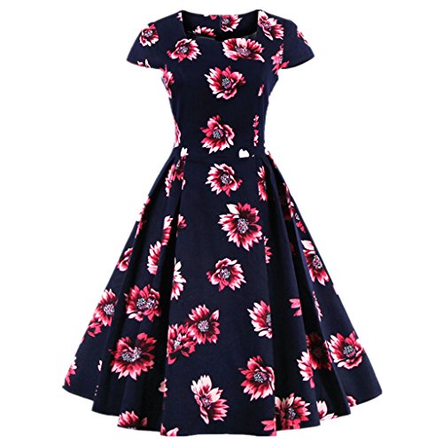 KILOLONE Women's 50s Floral Cap Sleeve Rockabilly Vintage Party Evening Cocktail Dress?Red?S?