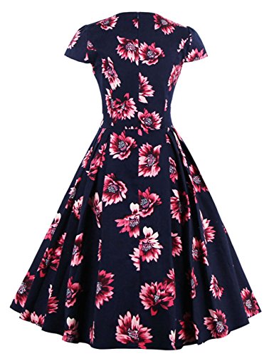 KILOLONE Women's 50s Floral Cap Sleeve Rockabilly Vintage Party Evening Cocktail Dress?Red?M?