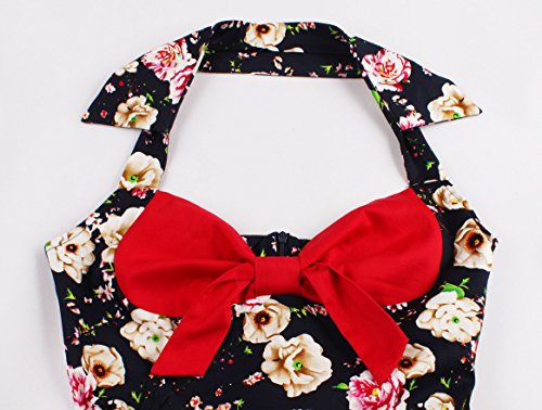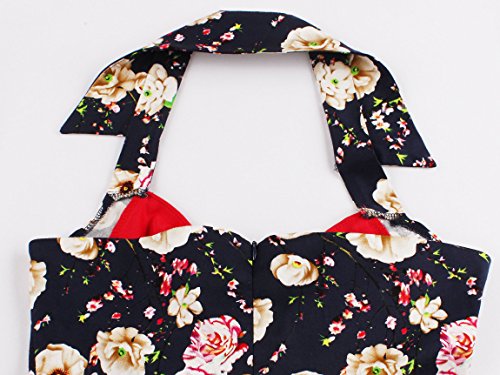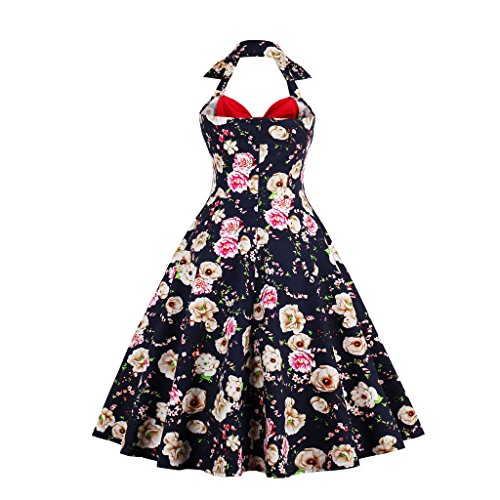KILOLONE Women Halter Rockabilly 1950s Vintage Retro Floral Print Pin Up Swing Cocktail Party Prom Dress