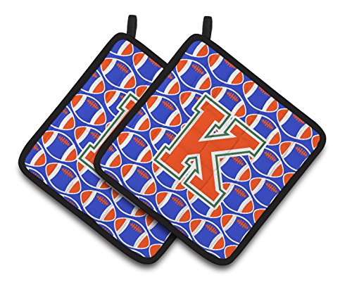 Caroline's Treasures Letter K Football green, Blue & Orange Pair of Pot Holders CJ1083-KPTHD, 7.5HX7.5W, Multicolor