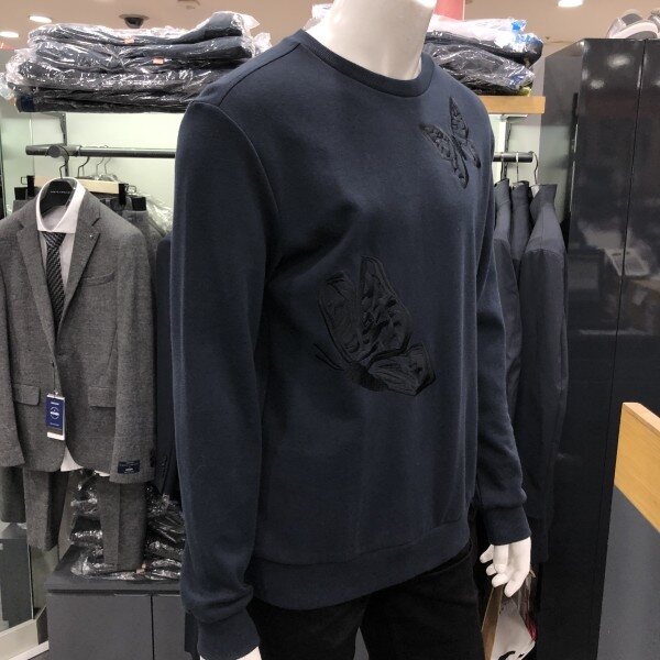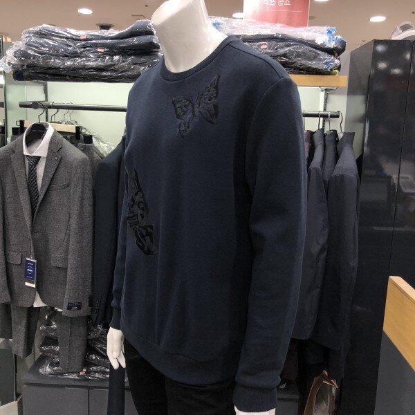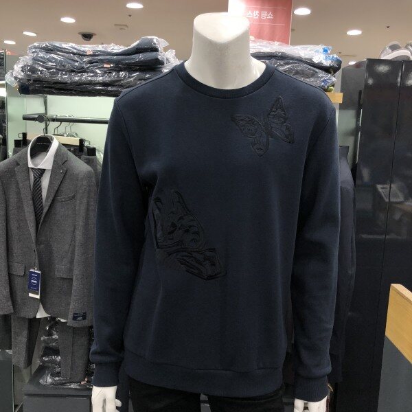 보온성과 소프트한 터치감이 좋은 양면소재의 나비모양을 자수로 표현한 맨투맨입니다 피부에 닿는 느낌이 부드러워 착장감이 좋습니다