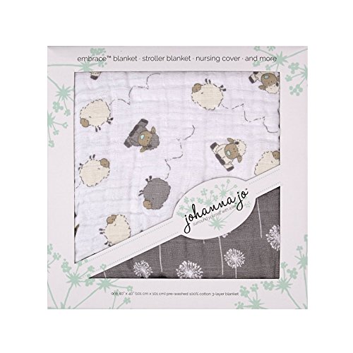 - These exclusive double-gauze blankets feature our breathable and natural cotton Embrace® fabric that become softer with every wash. Each 3-layer blanket is 40'' x 40". Features Embrace Double Gauze Prints of Dandelion and Lambie. Colors include steel cream taupe opal and white.