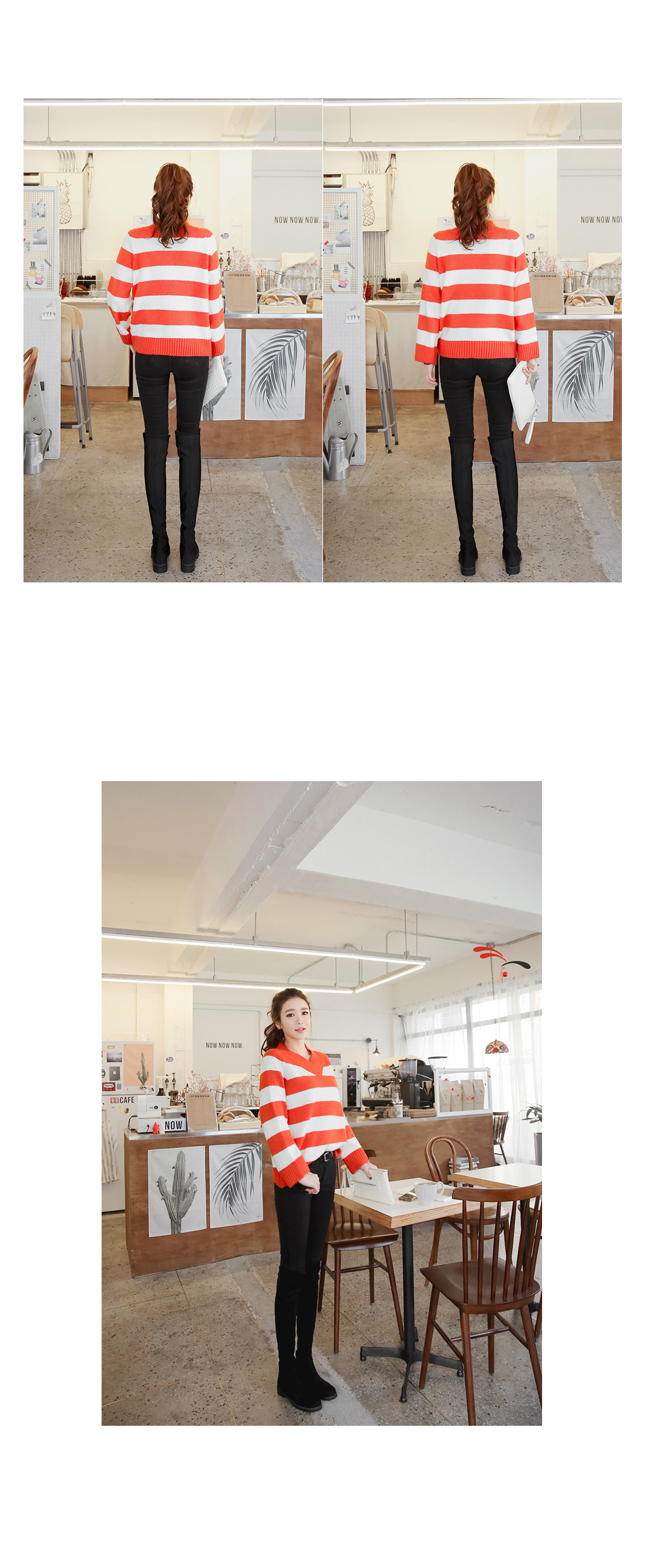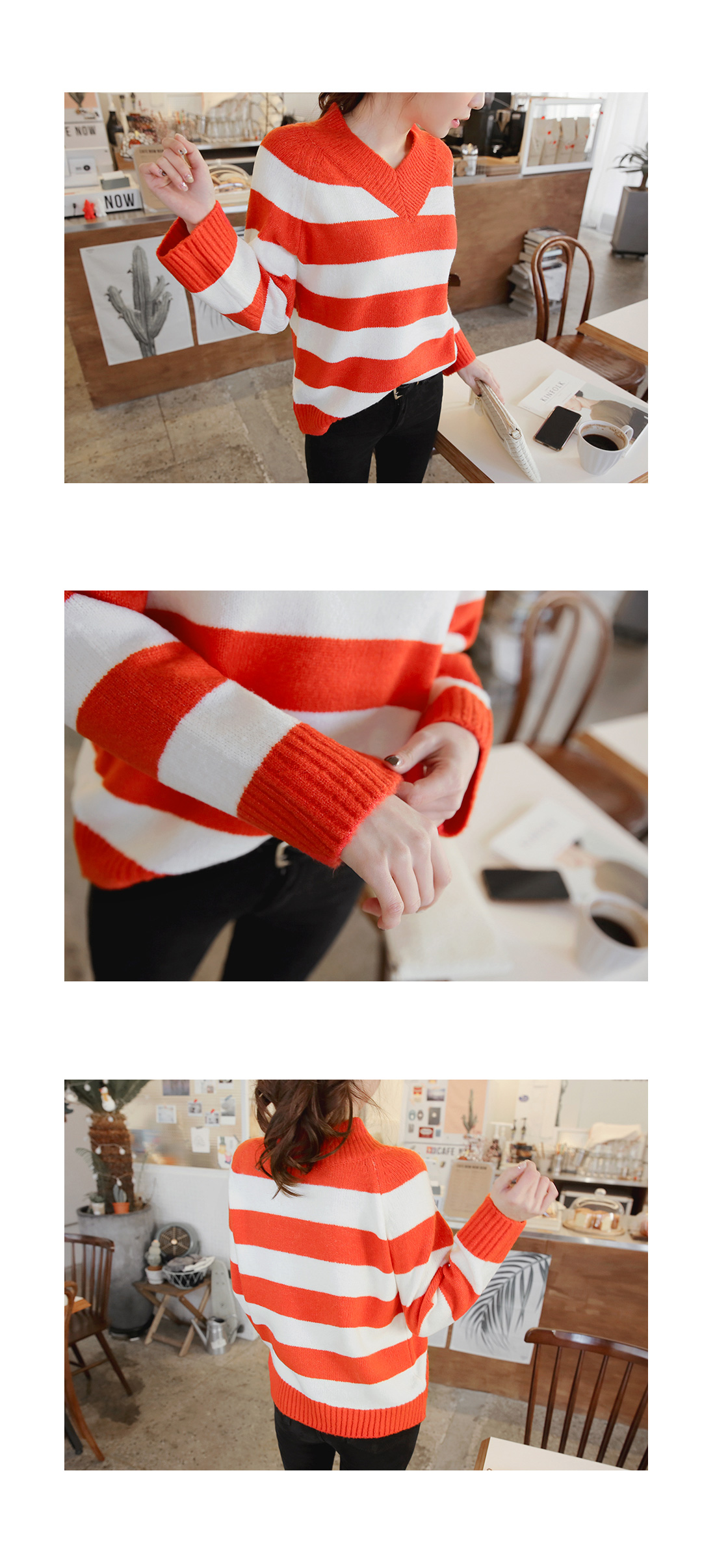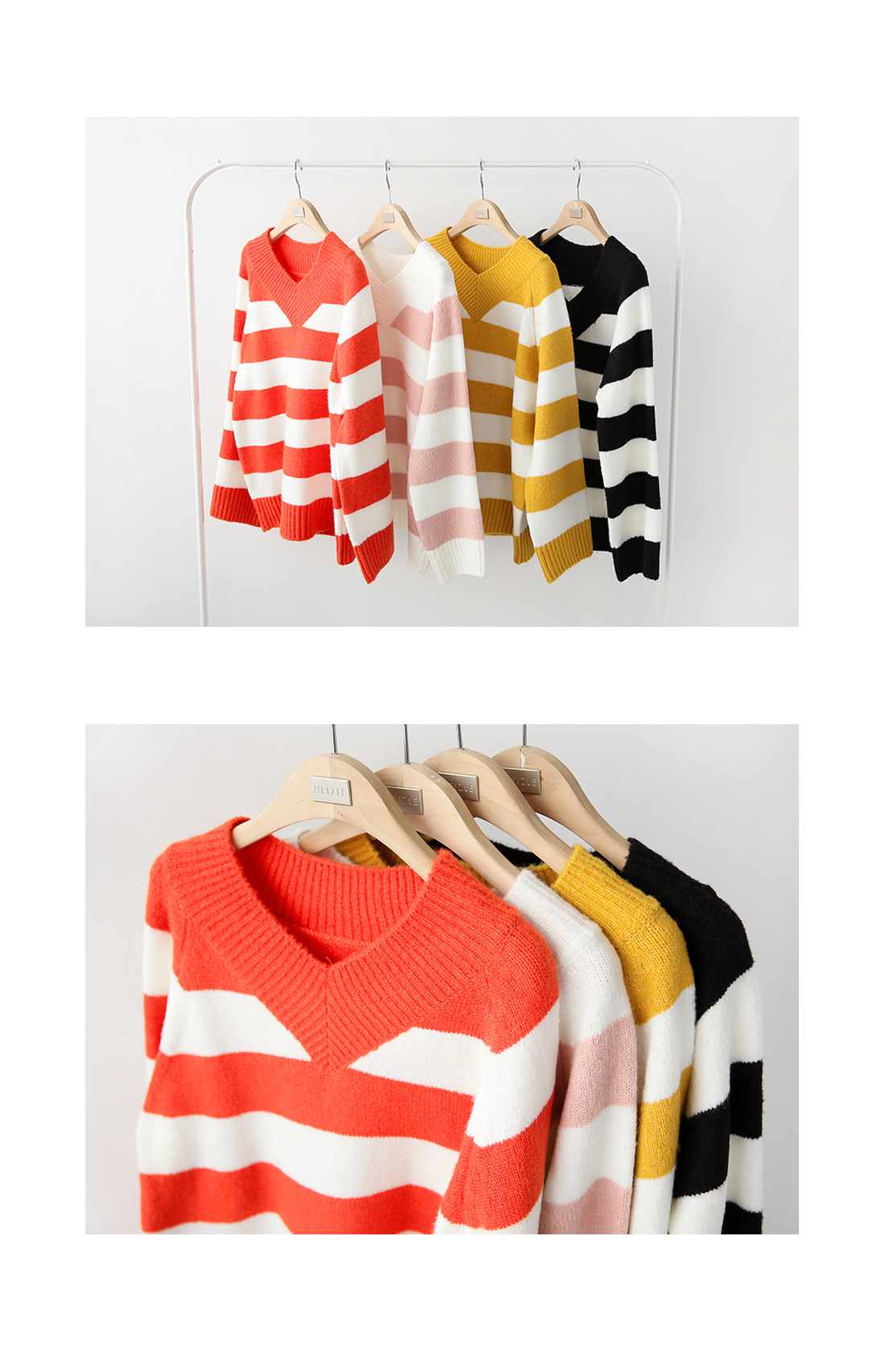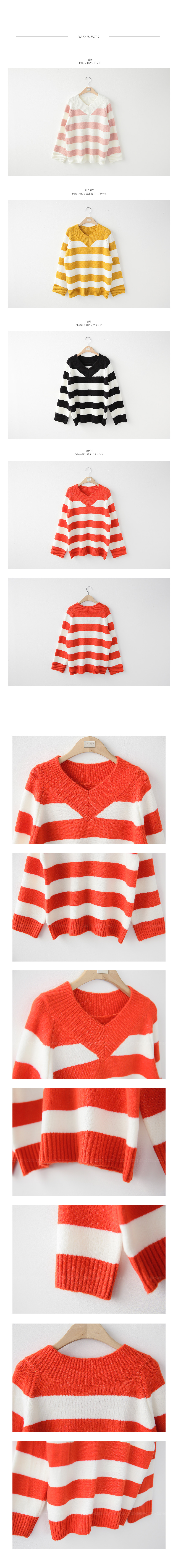 컬러풀한 스트라이프패턴의 브이넥니트에요^^ 소프트한 짜임의 니트소재감으로 입었을 때 착용감이 편안하구요 신축성이 좋아 활동감도 자유로워요~ 브이넥으로 슬림한 페이스라인을 보여주는 브이넥니트구요 컬러풀한 스트라이프패턴이 경쾌한 포인트룩을 완성해 준답니다^^* 심플한 하의에 가볍게 매치해도 스타일리시한 스트라이프니트에요!