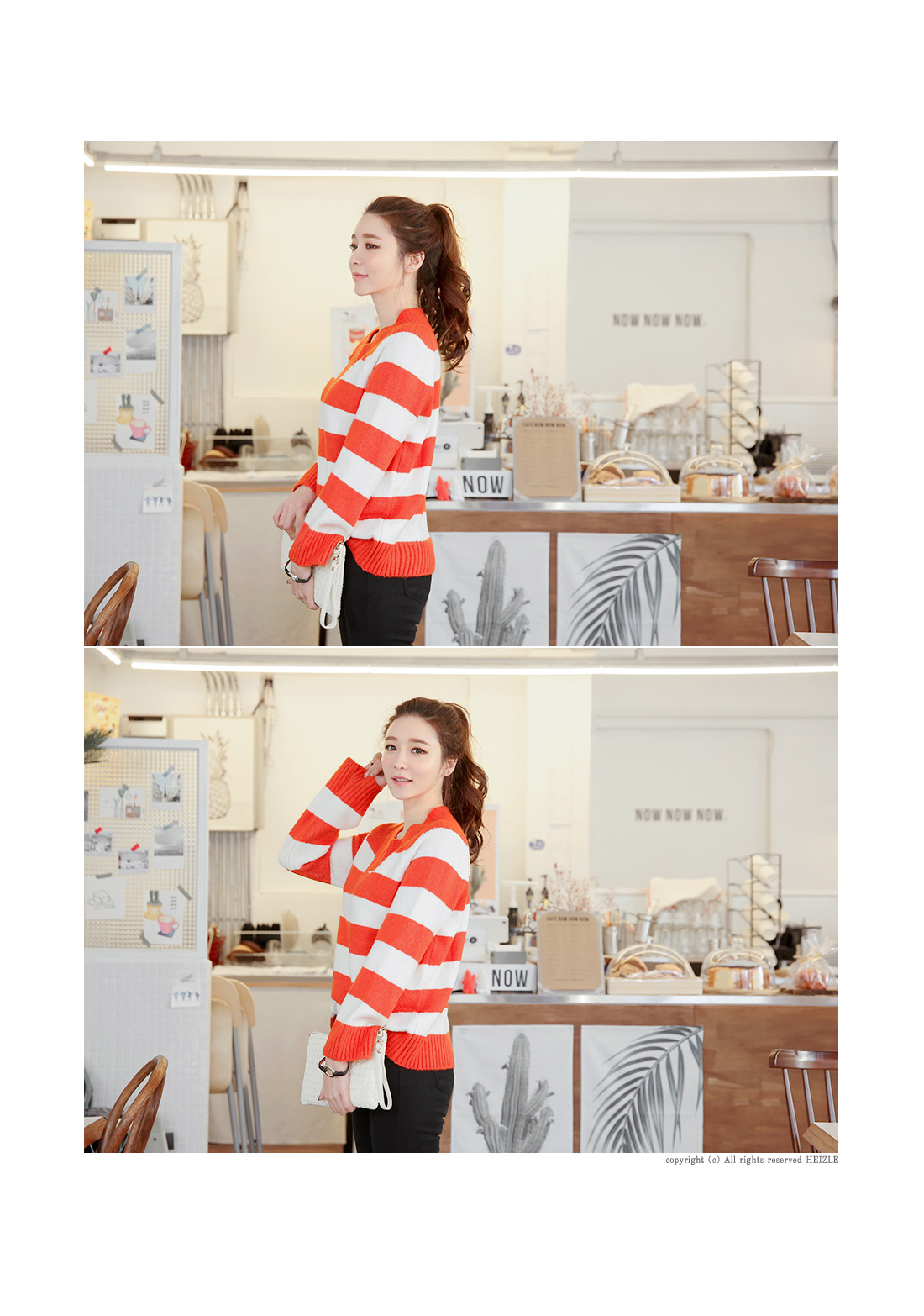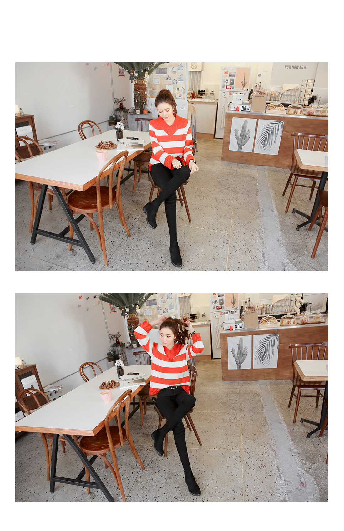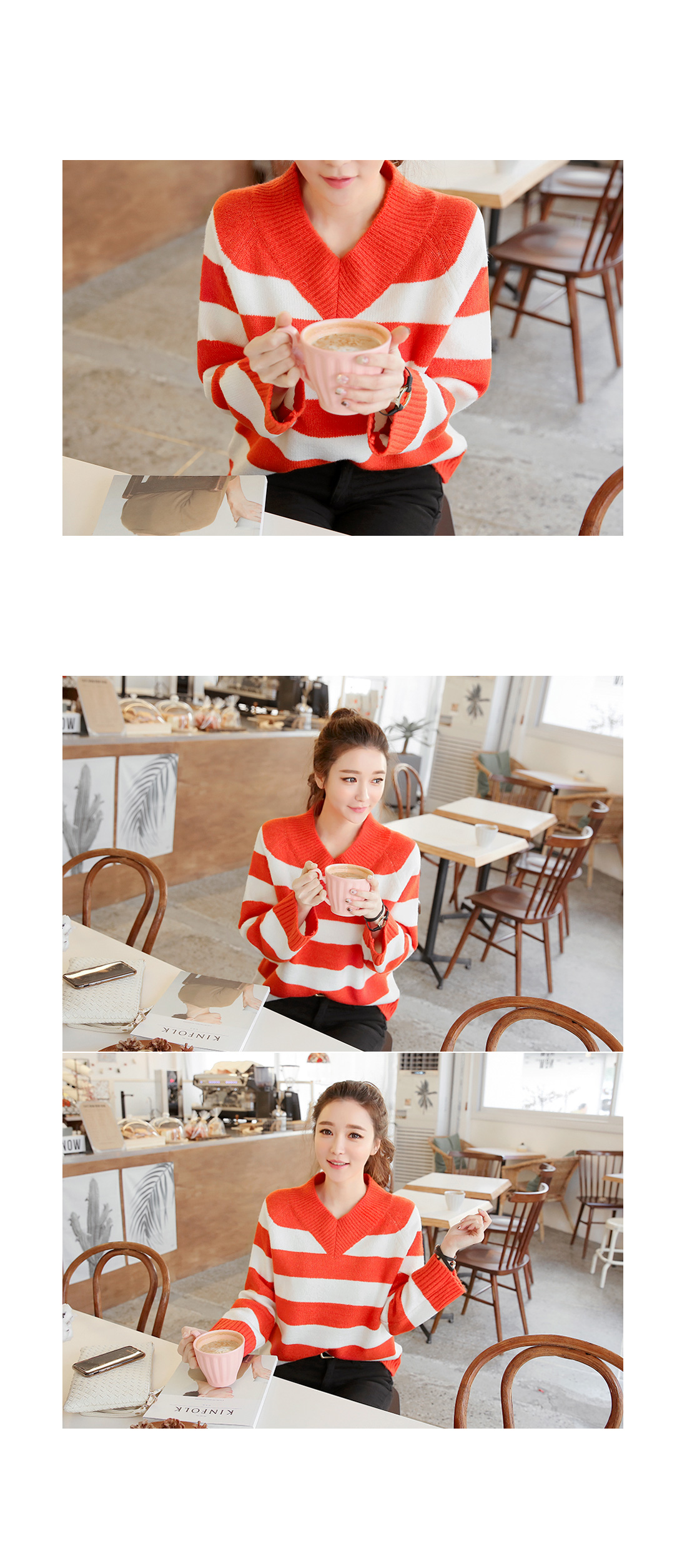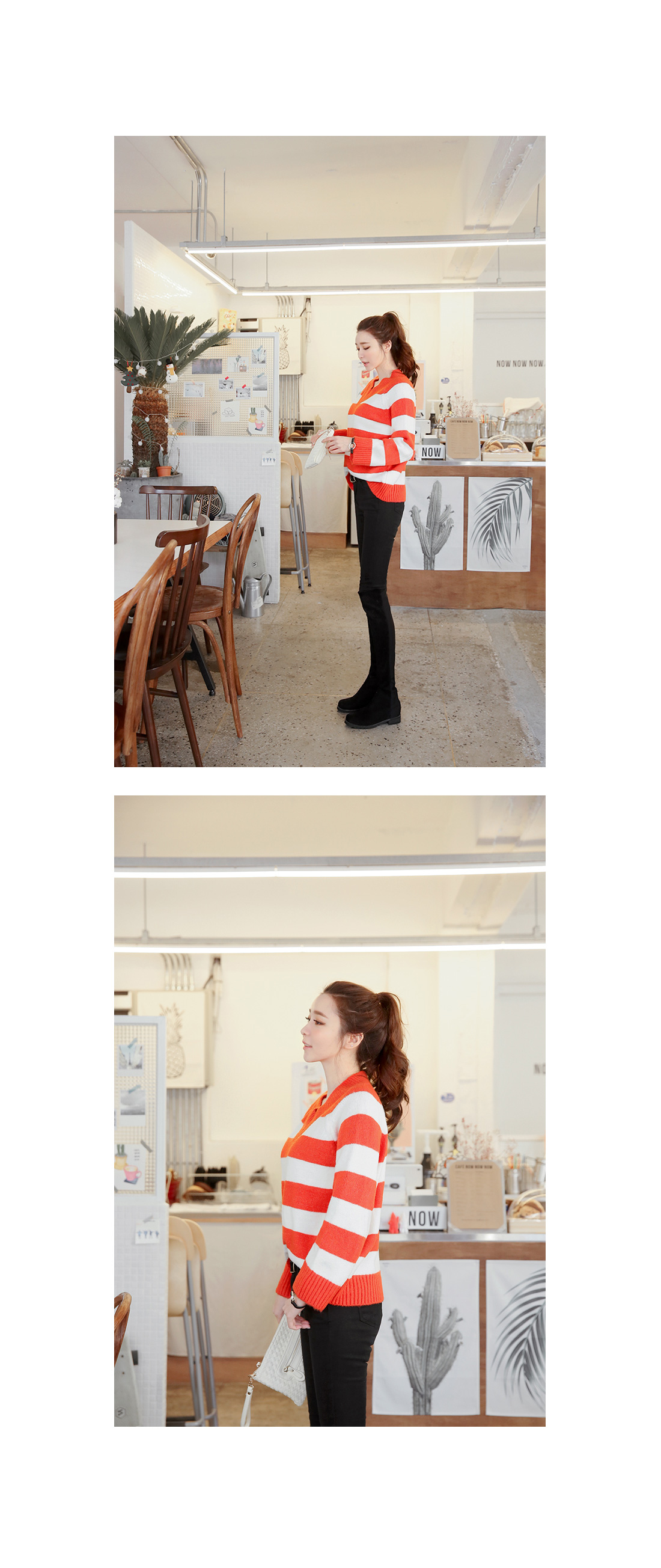 컬러풀한 스트라이프패턴의 브이넥니트에요^^ 소프트한 짜임의 니트소재감으로 입었을 때 착용감이 편안하구요 신축성이 좋아 활동감도 자유로워요~ 브이넥으로 슬림한 페이스라인을 보여주는 브이넥니트구요 컬러풀한 스트라이프패턴이 경쾌한 포인트룩을 완성해 준답니다^^* 심플한 하의에 가볍게 매치해도 스타일리시한 스트라이프니트에요!