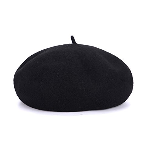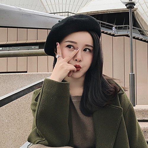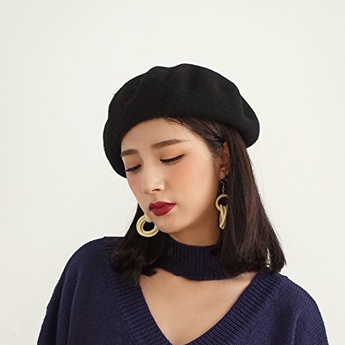 (Xelue FF)/Accessories/Hats/DIRECT FROM USA/Combo Set Women Girl 1 Pcs Solid Color Wool Beret Beanie Hat Cap 1 Pair Retro Black with Back...