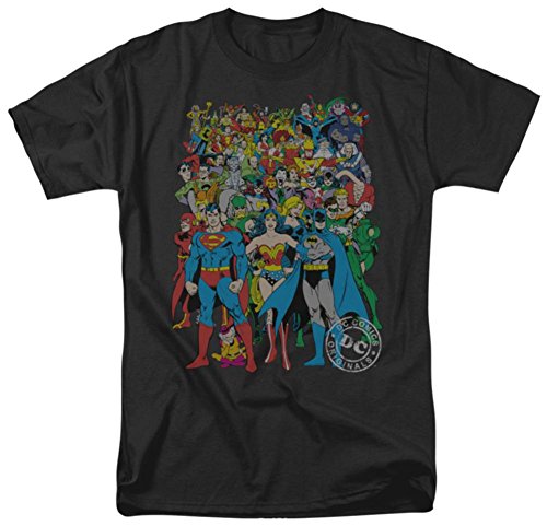 Product Description This adult T-shirt is an officially licensed product from DC Comics. The shirt features our cool Original Universe -- Justice League design printed on 100% cotton. Also available in youth and juniors sizes. 0