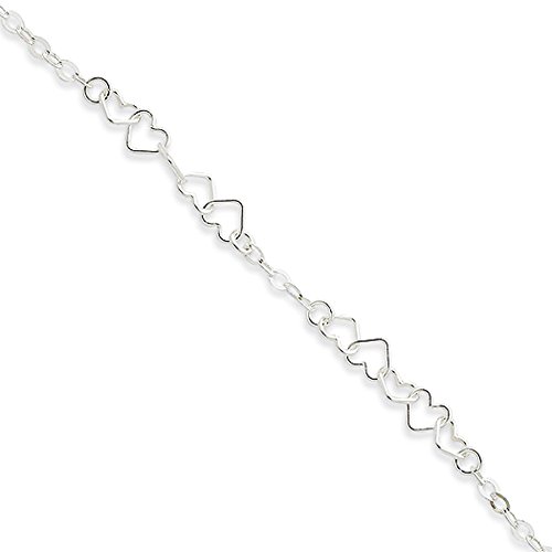 Wrap your ankles with love and devotion. This cable link and interlocking hearts anklet will lift your spirits every time you wear them. Created from polished sterling silver, measures approximately 6mm in width by 9-inches in length and finished with a fancy lobster clasp to keep it safely in place. Made in ItalyFeature