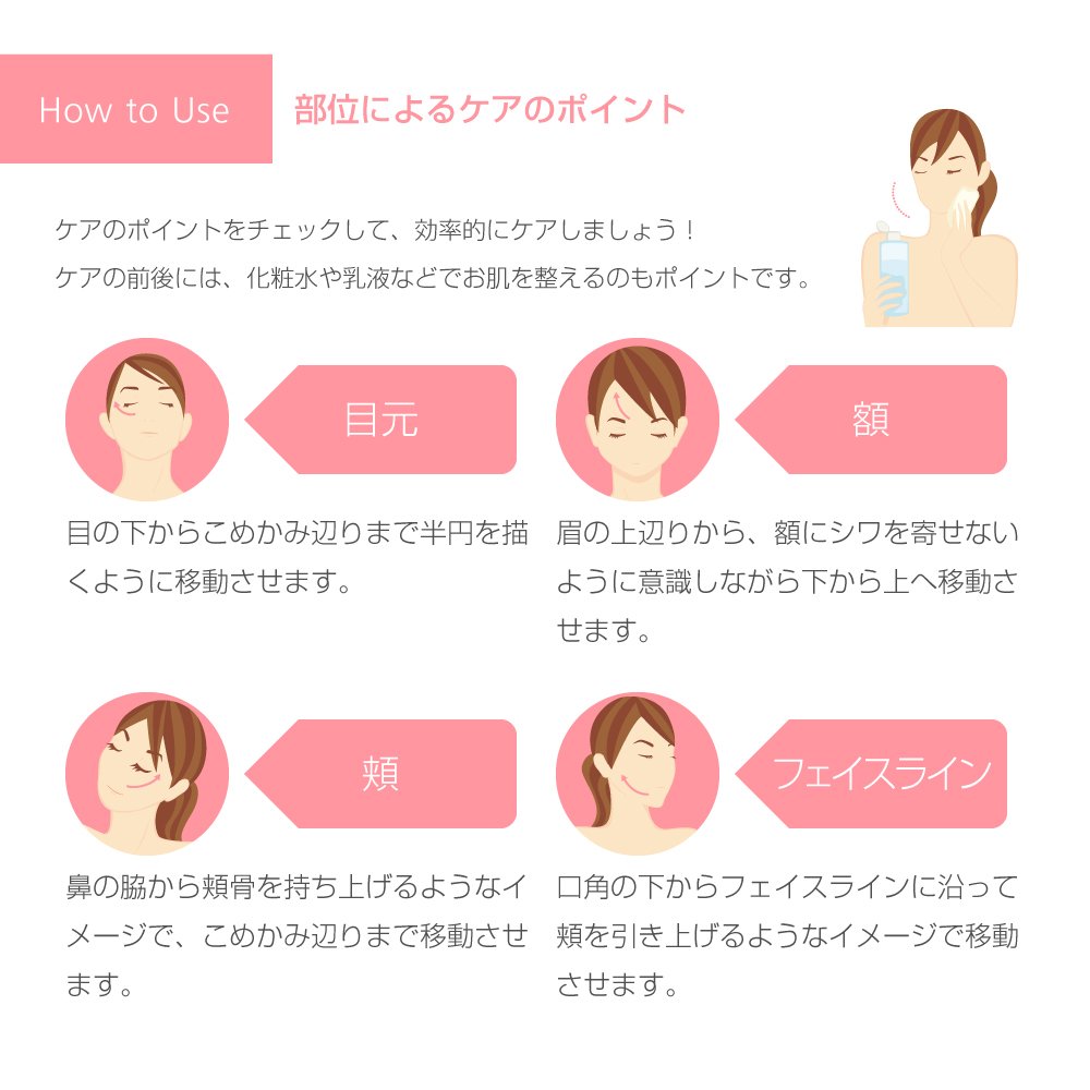 It tightens while relaxing the fatigue of the whole face with the stimulation of micro vibration transmitted from the head, giving gloss and elasticity to the bare skin.