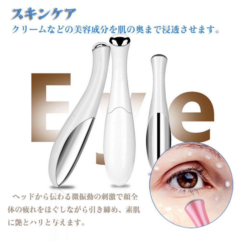 This product is a beauty facial instrument which can perform skin care around eyes by ion introduction and vibration function.