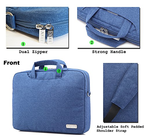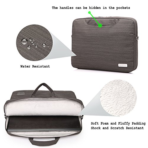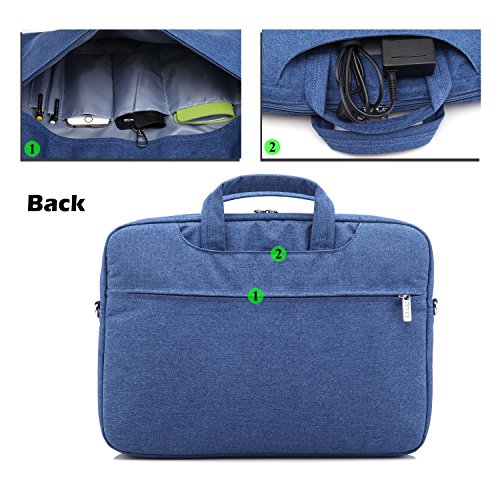 -. Feature : Exterior water resistance durable suit fabric material with reinforced dual zipper to secure your device / Unique foam padding layer and fluffy fabric lining features bump and shock absorption and protects laptop from accidental scratches / Features two large top exterior pockets (front and back), and additional back zippered pocket with organization panels for phone, wallet, pens, and accessories / Strong top handles for carrying or tuck away in the pockets when not needed. Also includes a detachable, softly padded adjustable shoulder strap / Suitable for most MacBooks / laptops / notebooks / Ultrabooks; may not snugly fit all computers due to variations in the sizes of different models